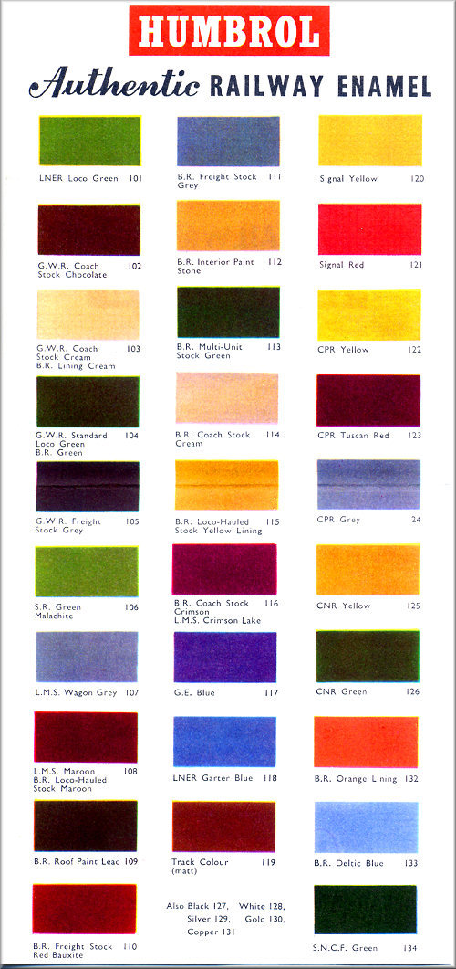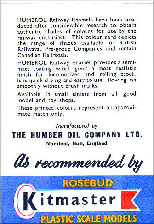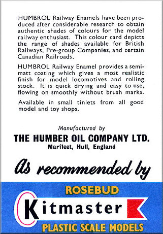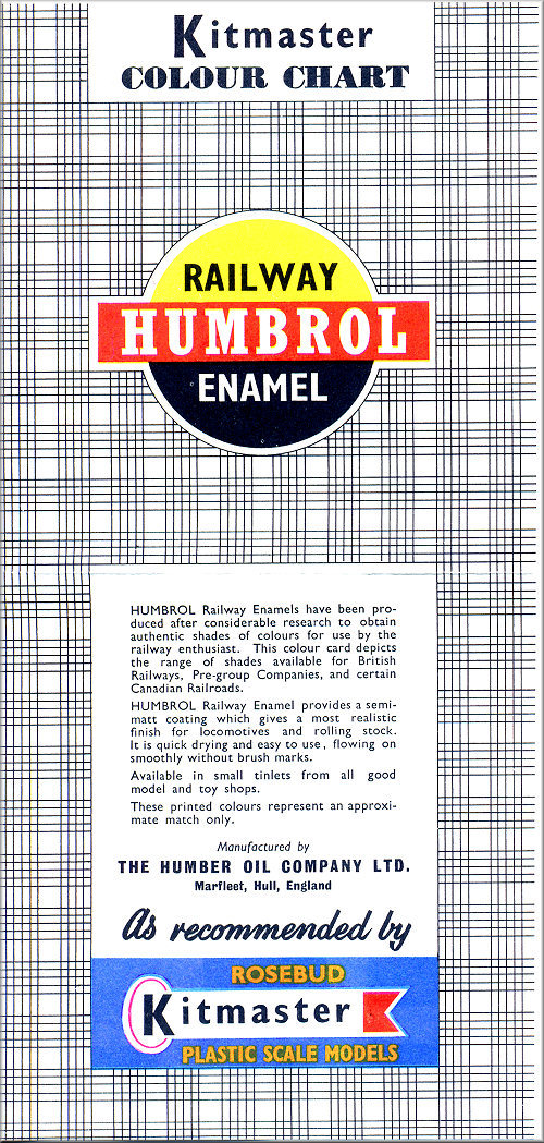Humbrol Kitmaster Colour Chart, included with the Kits