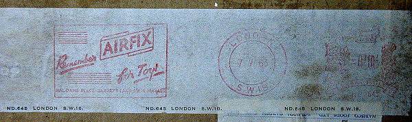 Airfix Postage Label on the Cardboard Box. Posted 07/05/1963.