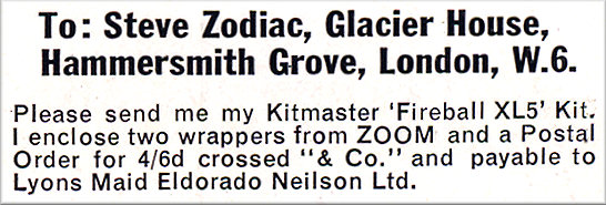 a Postal Order for 4/6d (22.5p) to obtain the XL5 Kit, value 9/-. The only
